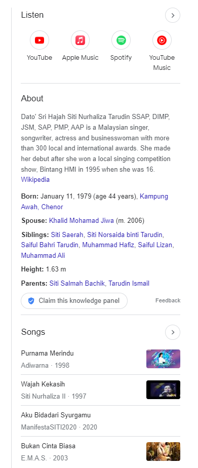 These are the several knowledge panels in Malaysia that have been in listed in the search engine google database.